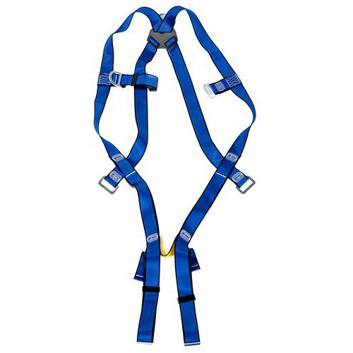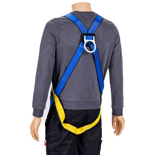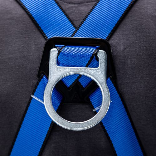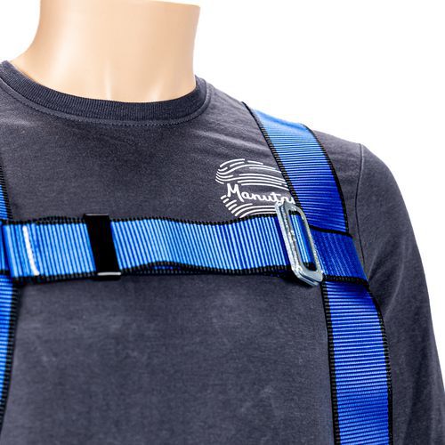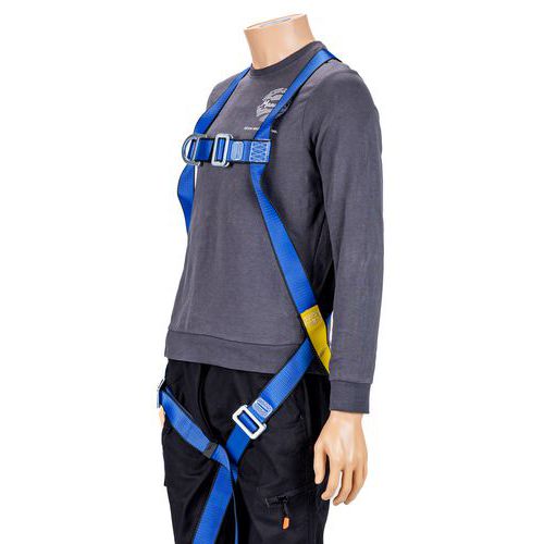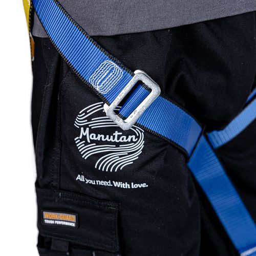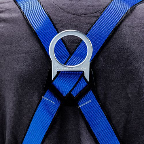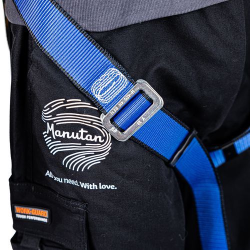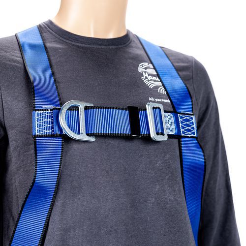 Pádový bezpečnostní postroj se dvěma kotevními body a tlumičem energie s certifikací CE pro naprostou jistotu.