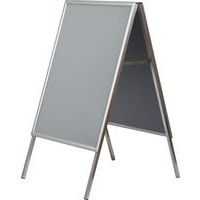 Reklamní áčko pro prezentaci reklamních plakátů nebo fotografií. Přední strana je krytá antireflexní UV fólií. Jednoduchá výměna plakátů odklopením bočních hliníkových profilů. Stabilitu zajišťují hliníkové nohy se zkoseným plastovým zakončením. Áčka jsou určená pro použití v interiéru.