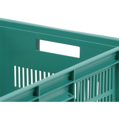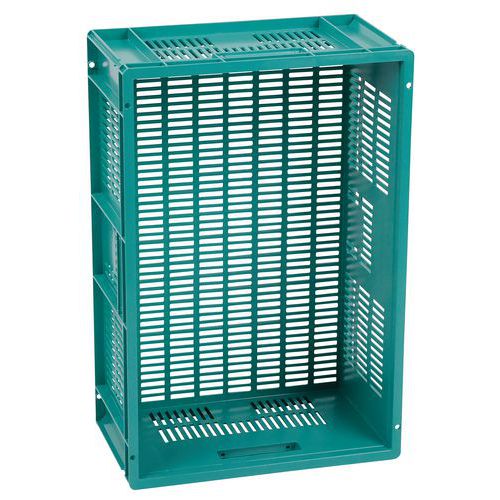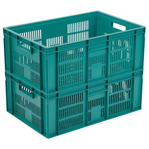 Velmi robustní stohovací plastové boxy v zeleném provedení. Perforované stěny a dno boxu. Vysoká stabilita stohování díky zesíleným okrajům.