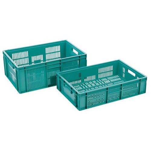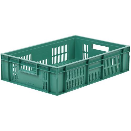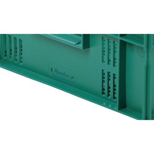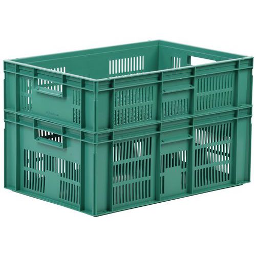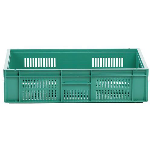 Velmi robustní stohovací plastové boxy v zeleném provedení. Perforované boční stěny boxu. Vysoká stabilita stohování díky zesíleným okrajům.