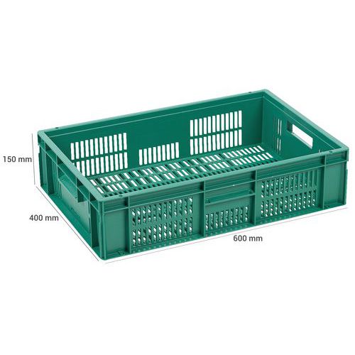 Plastová Euro přepravka Manutan Expert s perforovanými stěnami, zelená, 150 x 400 x 600 mm, 28 l Plastová Euro přepravka Manutan Expert s perforovanými stěnami, zelená, 150 x 400 x 600 mm, 28 l