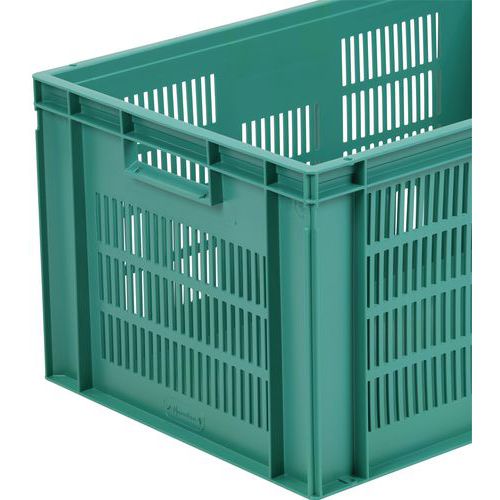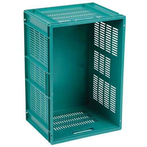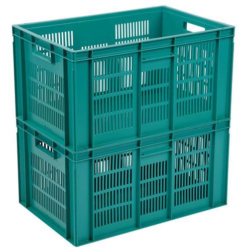 Velmi robustní stohovací plastové boxy v zeleném provedení. Perforované boční stěny boxu. Vysoká stabilita stohování díky zesíleným okrajům.