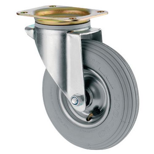 - Otočné kolečka s ocelovou obručí, nafukovací gumovou pneumatikou a pozinkovaným ocelovým držákem.