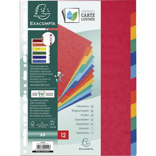 Barevné rozdružovače Exacompta, pro formát 21 x 29,7 cm, počet dělení 12