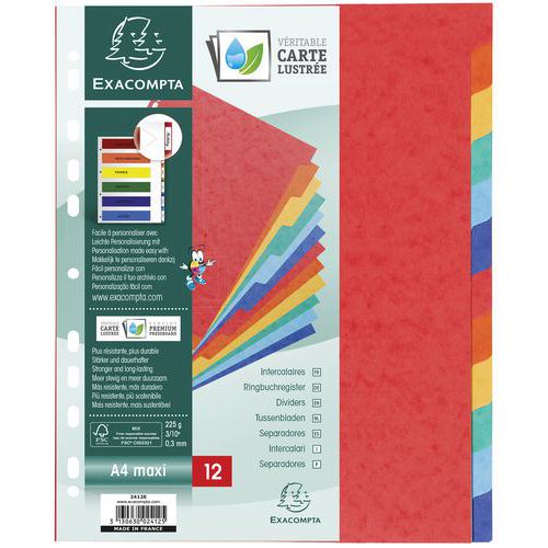 Barevné rozdružovače Exacompta, pro formát 24 x 32 cm, počet dělení 12