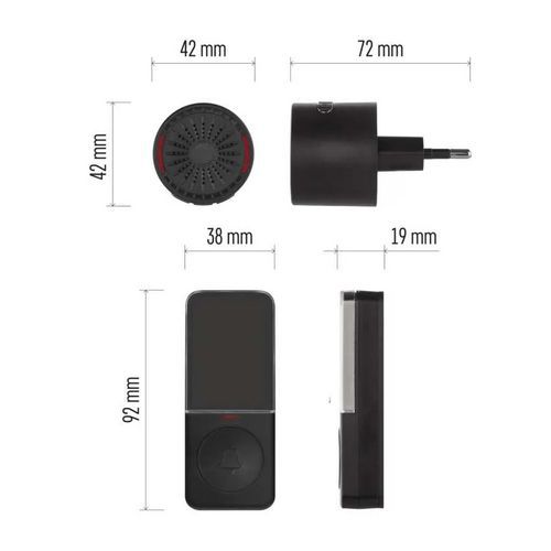- Rozměr přijímače 72 x 42 x 42 mm, rozměr tlačítka 19 x 38 x 92 mm.