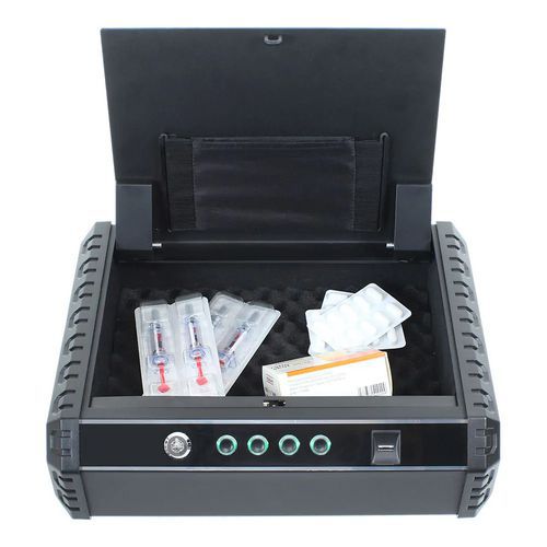 Kazetu lze zamknout díky otisku prstů, číselné kombinace nebo pomocí nouzového klíče.