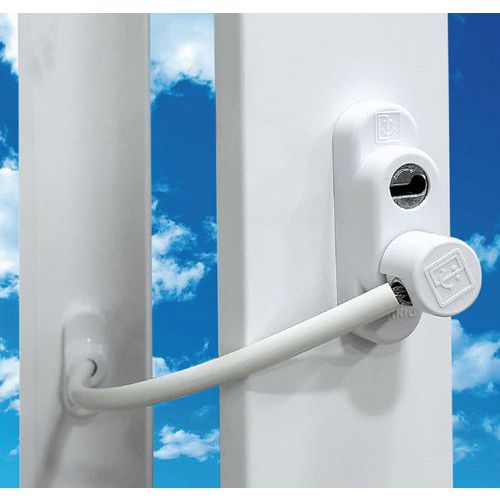 - Bezpečnostní lankový zámek pro plastová, hliníková a dřevěná okna.