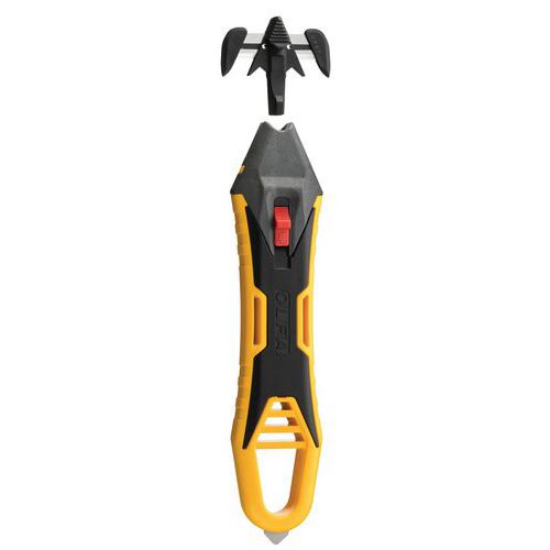 - Vyměnitelný bezpečnostní nůž se skrytým ostřím.