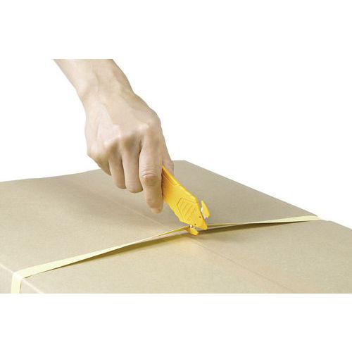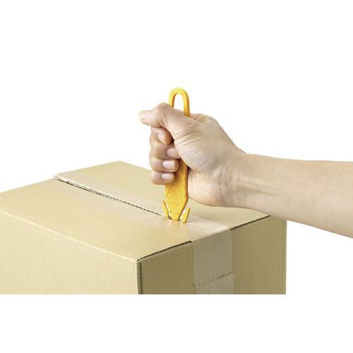 - Skrytá čepel zabraňuje kontaktu s prsty nebo výrobky uvnitř kartonu.