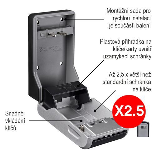 - Vnitřní kapacita schránky je 2,5krát větší než mají standardní schránky na klíče.