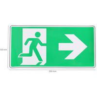 - Bezpečnostní únikové tabulky označující směr k nouzovému východu.