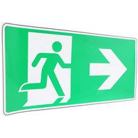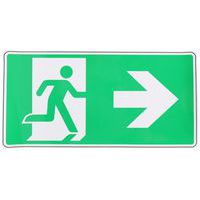 - Bezpečnostní únikové tabulky označující směr k nouzovému východu.