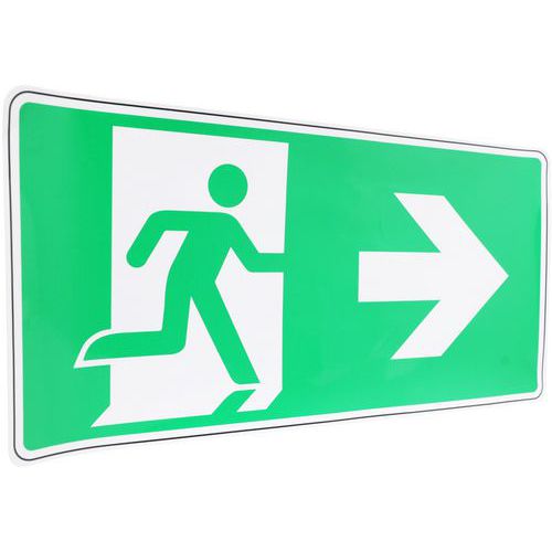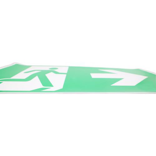 - Kombinace piktogramu a šipky vlevo dává jasnou a přesnou informaci o směru, kterým se vydat v případě nouze.