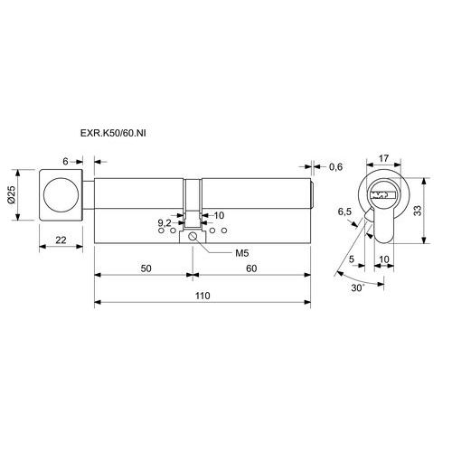 Bezpečnostní vložka EuroXStar s kouli, 50/60 mm, nikl
