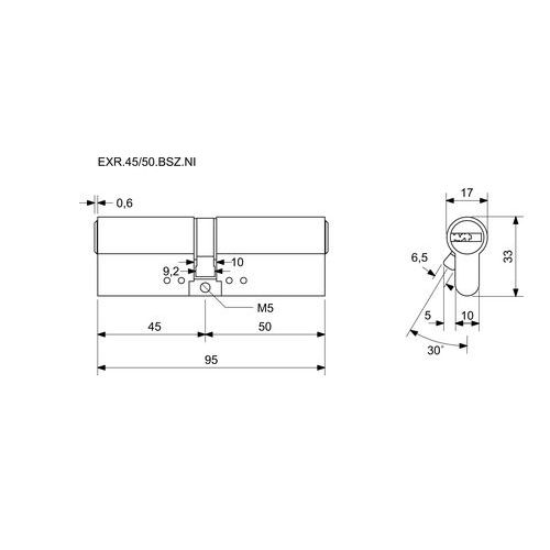 Bezpečnostní vložka EuroXStar s prostupovou vložkou, 45/50 mm, nikl