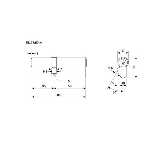 Bezpečnostní vložky EuroSecure, 35 mm, nikl
