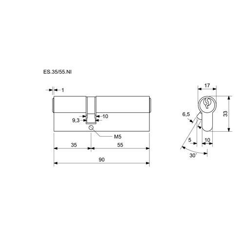 Bezpečnostní vložka EuroSecure, 35/55 mm, nikl