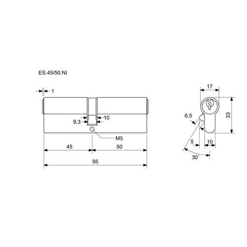 Bezpečnostní vložka EuroSecure, 45/50 mm, nikl