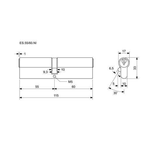 Bezpečnostní vložka EuroSecure, 55/60 mm, nikl