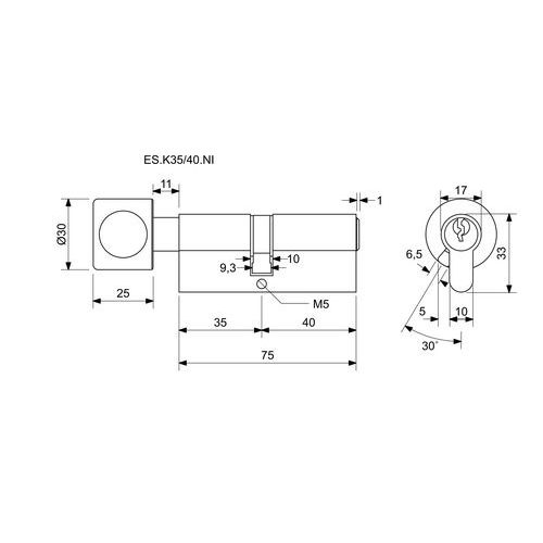 Bezpečnostní vložky EuroSecure s kouli, 35 mm, nikl