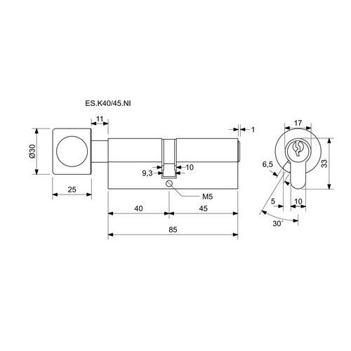 Bezpečnostní vložka EuroSecure s kouli, 40/45 mm, nikl