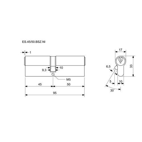 Bezpečnostní vložky EuroSecure s prostupovou vložkou, 45 mm, nikl
