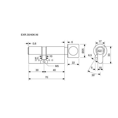 Bezpečnostní vložka EuroXStar s kouli, 30/40 mm, nikl