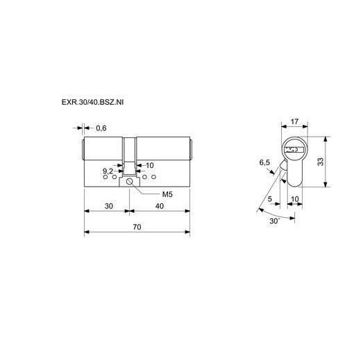 Bezpečnostní vložky EuroXStar s prostupovou vložkou, 30 mm, nikl