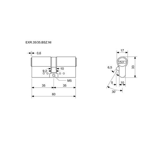 Bezpečnostní vložka EuroXStar s prostupovou vložkou, 35/35 mm, nikl