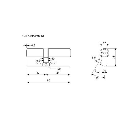 Bezpečnostní vložka EuroXStar s prostupovou vložkou, 35/45 mm, nikl
