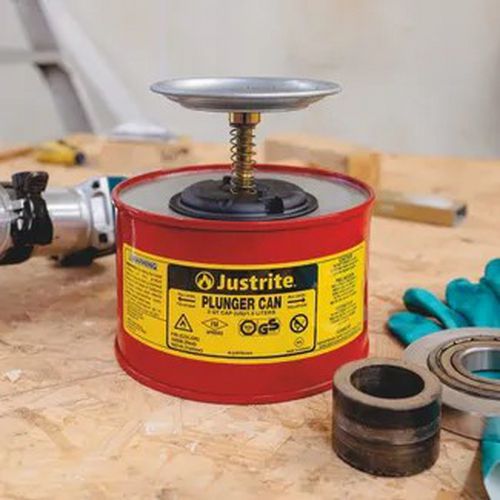 Bezpečnostní zvlhčovače z pozinkovaného ocelového plechu slouží pro bezpečné a úsporné navlhčování hadrů a čisticích utěrek. Zvlhčovač omezuje přímý kontakt s hořlavým materiálem. Čerpací zařízení dopravuje kapalinu k navlhčovacímu talíři o průměru 128 mm. Součástí je perforované sítko, které brání šíření plamene. Nádoby jsou opatřeny FM a TUV certifikátem.
