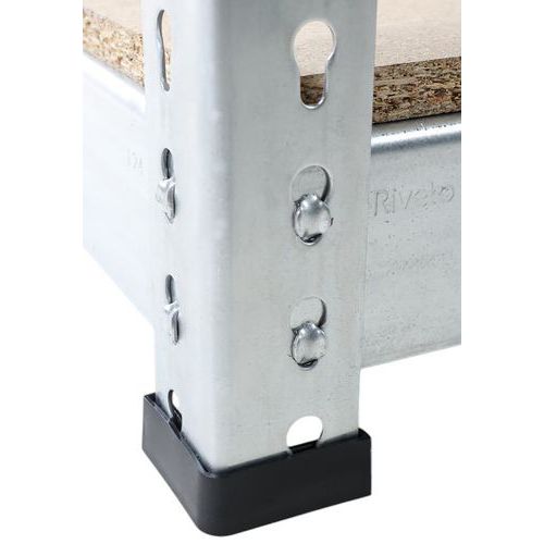 - Ochranné plastové patky (možnost dokoupení kovových patek pro uchycení stojin regálu k podlaze).