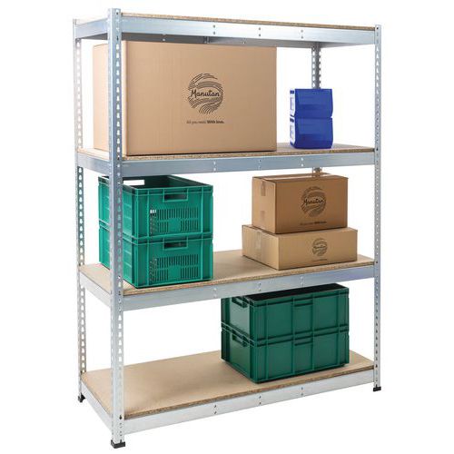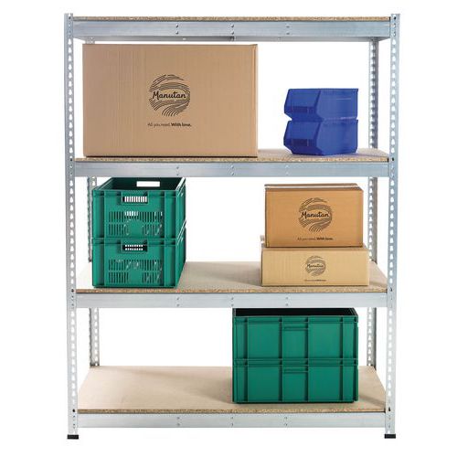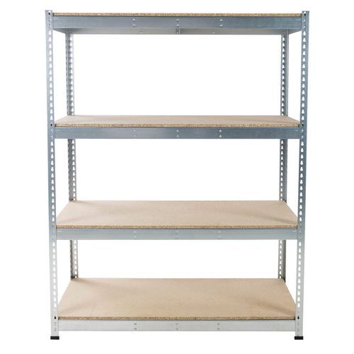 Kovový regál Rapid 1, 198 x 152,5 x 45,5 cm, 440 kg/police, 4 dřevotřískové police, pozink