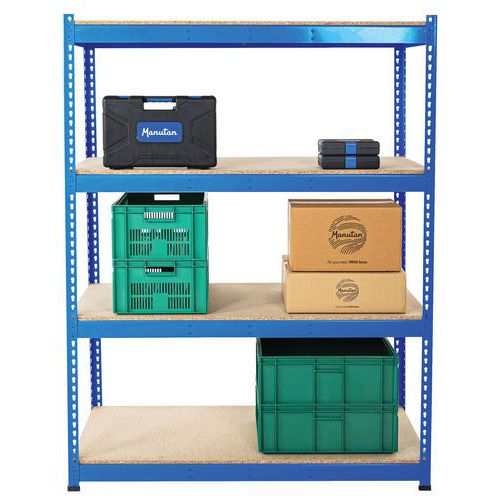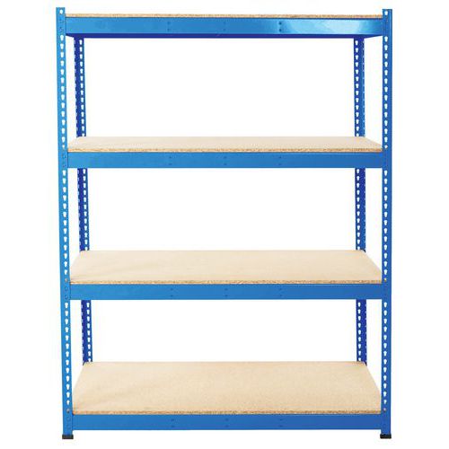 Kovový regál Rapid 1, 198 x 152,5 x 61 cm, 440 kg/police, 4 dřevotřískové police, modrý