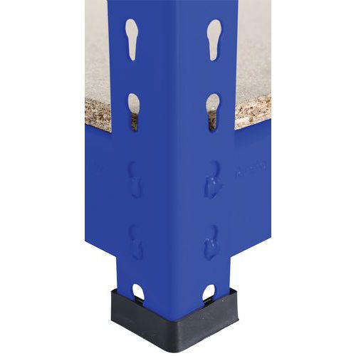 - Ochranné plastové patky (možnost dokoupení kovových patek pro uchycení stojin regálu k podlaze).
