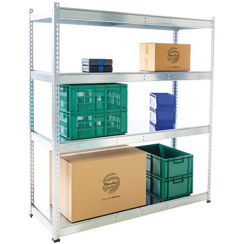 Kovový regál Rapid 1, 198 x 183 x 61 cm, 440 kg/police, 4 ocelové panely, pozink