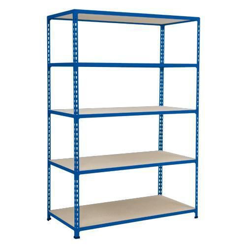 Kovový regál Rapid 2, 198 x 152,5 x 61 cm, 80 kg/police, 5 dřevotřískových polic, modrý
