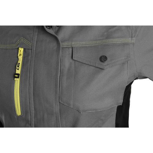 Dámská montérková blůza, strečová tkanina umožňující volný pohyb, ramena vyztužena 600D polyesterem, rukávy s pružnou manžetou, kapsička s klopou na levém rukávu, kryté zapínání na zip a druky, náprsní kapsy - na druk a zip, boční kapsy na zip, regulovatelný pas, větrání na zádech, reflexní doplňky. Doporučené použití: strojírenství, stavebnictví, lehký průmysl, automobilový průmysl, logistika, skladová manipulace, spedice, autoservisy, údržba, montáže, zemědělství, zahrada, hobby. Velikost: 38-58 Reflexní doplňky: Ano OEKO-TEX® STANDARD 100: Ano