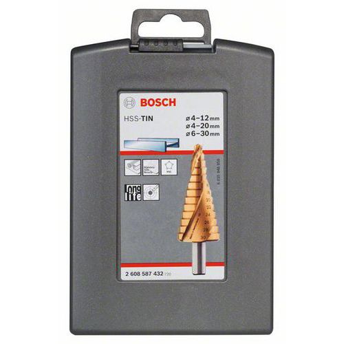 | Název produktu | Bosch - 3dílná sada stupňovitých vrtáků HSS-TiN 4-12, 4-20, 6-30 mm |
