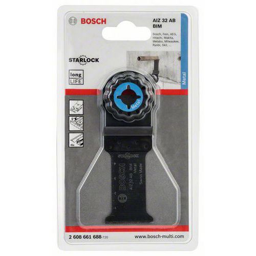 - Hodí se pro veškeré nářadí Starlock (Bosch: GOP 12V-28 Professional, PMF 220 CE, PMF 250 CES), StarlockPlus (Bosch: GOP 30-28, GOP 40-30, GOP 18V-28 Professional, PMF 350 CES - Fein: AFMT 12 SL, AFMT 12 QSL, AFMM 18 QSL, FMT 250 SL, FMT 250 QSL, FMM 350 QSL) a StarlockMax (Bosch: GOP 55-36 Professional - Fein: AFSC 18 QSL, AFSC 18 QCSL, FSC 500 QSL). Nářadí Bosch OIS GOP a PMF, Fein Multimaster a Multitalent, AEG, Einhell, Hitachi, Makita, Metabo, Milwaukee, Ryobi, Skil atd. AIZ 32 AB. BIM ponorný pilový list Starlock Metal. Zarovnávání hřebíků. Zarovnávání měděných trubek. Ponorné řezy do sádrokartonových desek