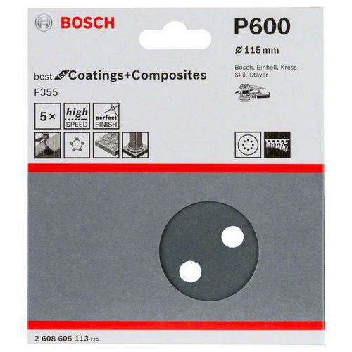Bosch - Brusný papír F355, balení 5 ks 115 mm, 600, 5 BAL