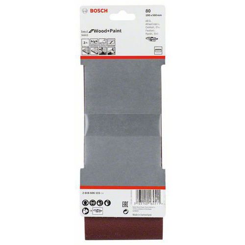 Bosch - 3dílná sada brusných pásů X440 100 x 560 mm, 80, 4 BAL Bosch - 3dílná sada brusných pásů X440 100 x 560 mm, 80, 4 BAL