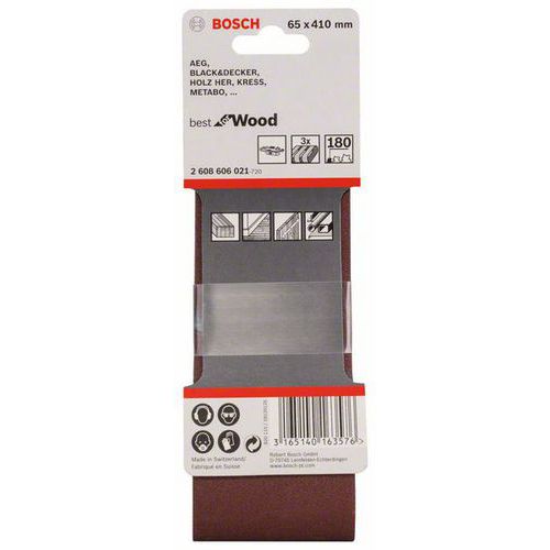 Bosch - 3dílná sada brusných pásů X440 65 x 410 mm, 180, 4 BAL Bosch - 3dílná sada brusných pásů X440 65 x 410 mm, 180, 4 BAL