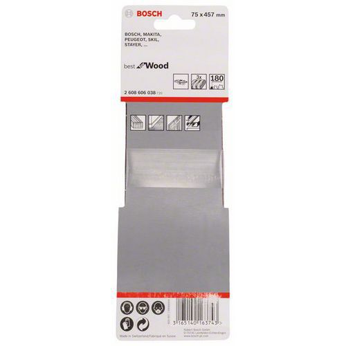 Bosch - 3dílná sada brusných pásů X440 75 x 457 mm, 180, 4 BAL Bosch - 3dílná sada brusných pásů X440 75 x 457 mm, 180, 4 BAL