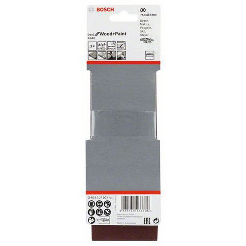 Bosch - 3dílná sada brusných pásů X440 75 x 457 mm, 80, 4 BAL Bosch - 3dílná sada brusných pásů X440 75 x 457 mm, 80, 4 BAL