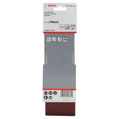 Bosch - 3dílná sada brusných pásů X440 75 x 533 mm, 120, 4 BAL Bosch - 3dílná sada brusných pásů X440 75 x 533 mm, 120, 4 BAL