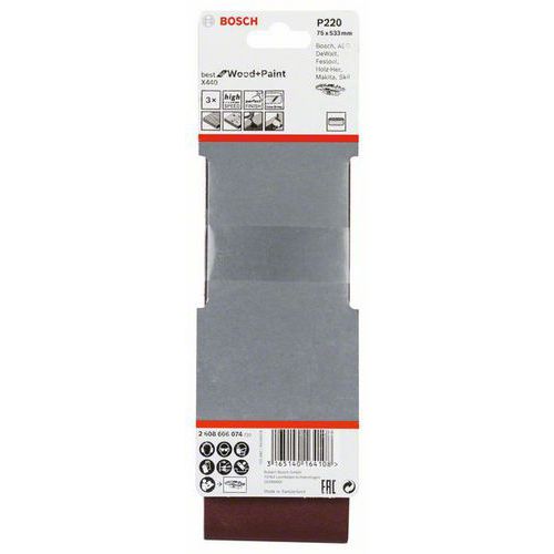 Bosch - 3dílná sada brusných pásů X440 75 x 533 mm, 220, 4 BAL Bosch - 3dílná sada brusných pásů X440 75 x 533 mm, 220, 4 BAL