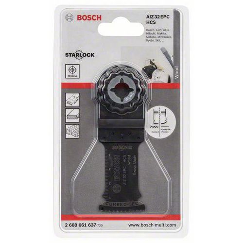 - Hodí se pro veškeré nářadí Starlock (Bosch: GOP 12V-28 Professional, PMF 220 CE, PMF 250 CES), StarlockPlus (Bosch: GOP 30-28, GOP 40-30, GOP 18V-28 Professional, PMF 350 CES - Fein: AFMT 12 SL, AFMT 12 QSL, AFMM 18 QSL, FMT 250 SL, FMT 250 QSL, FMM 350 QSL) a StarlockMax (Bosch: GOP 55-36 Professional - Fein: AFSC 18 QSL, AFSC 18 QCSL, FSC 500 QSL). Nářadí Bosch OIS GOP a PMF, Fein Multimaster a Multitalent, AEG, Einhell, Hitachi, Makita, Metabo, Milwaukee, Ryobi, Skil atd. AIZ 32 EPC. HCS ponorný pilový list Starlock Wood. Ponorný řez do měkkého dřeva (např. při montáži větracích mřížek). Řezání otvorů do nábytku (např. pro umožnění přístupu k zásuvce). Zarovnávání dřevěných dílů (např. kolíků, čepů)