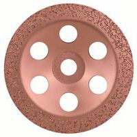 Hrncové kotouče s tvrdokovovým posypem pro mnohostranné možnosti použití. Hodí se pro odstraňování přesahů z bednění na pohledovém betonu, zbytkového betonu na prknech bednění, zbytků lepidla na dlaždicích, zbytků sklolaminátu nebo silných vrstev barev, opracování vápencového pískovce, zaoblování mramoru, čištění malých ploch od ochranných nátěrů, úpravu plynobetonu, péči o paznehty u kopytníků. Různá zrnitost - hrubá, střední, jemná - pro optimalizaci práce. Všechny hrncové kotouče z tvrdokovu Bosch jsou samostatně vyvážené. Hodí se pro opracování sklolaminátů, plynobetonu, měkkého a tvrdého dřeva, barev, laků, plniv, gumy, korku, kůže, plastů, pískovce, vápencového pískovce. Pro ručně vedené úhlové brusky při maximální obvodové rychlosti: 80 m/s (závisí na otáčkách a průměru kotouče). Upozornění: Bezprašná práce díky odsávacímu krytu Bosch 2 605 510 107, který připevníte bez použití nástrojů